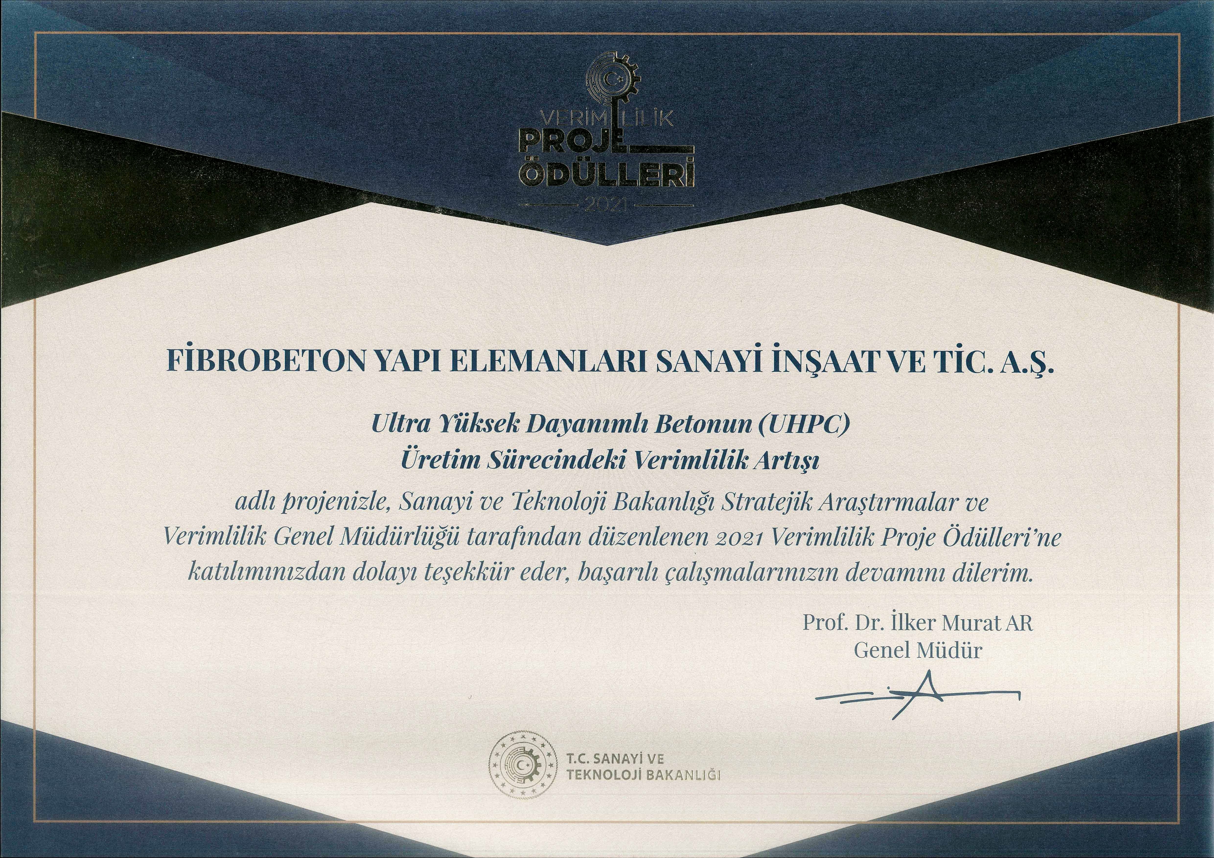 Sanayi ve Teknoloji Bakanlığı Teşekkür Belgesi Sanayi ve Teknoloji Bakanlığı Teşekkür Belgesi