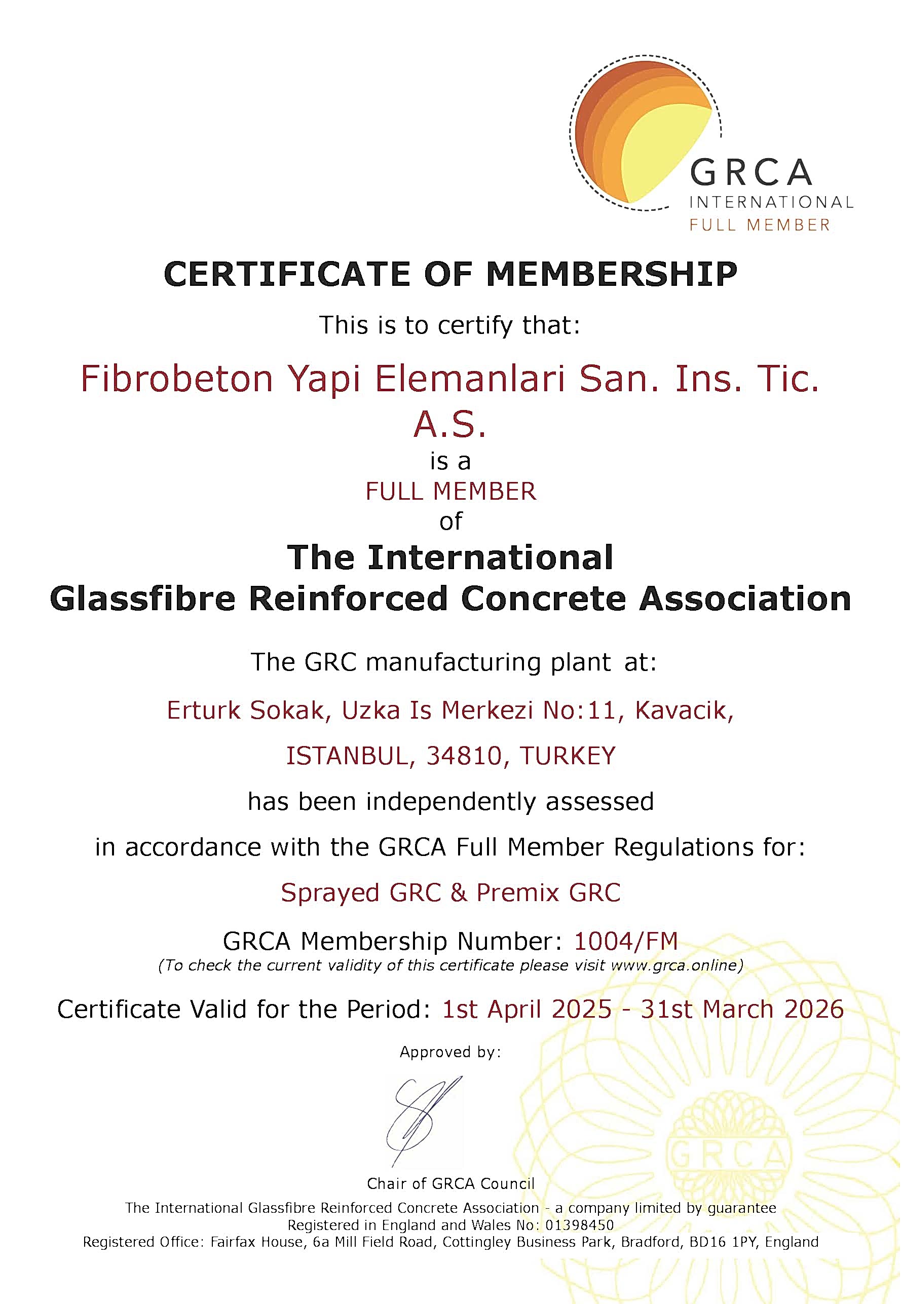 GRCA Tam Üyelik Sertifikası