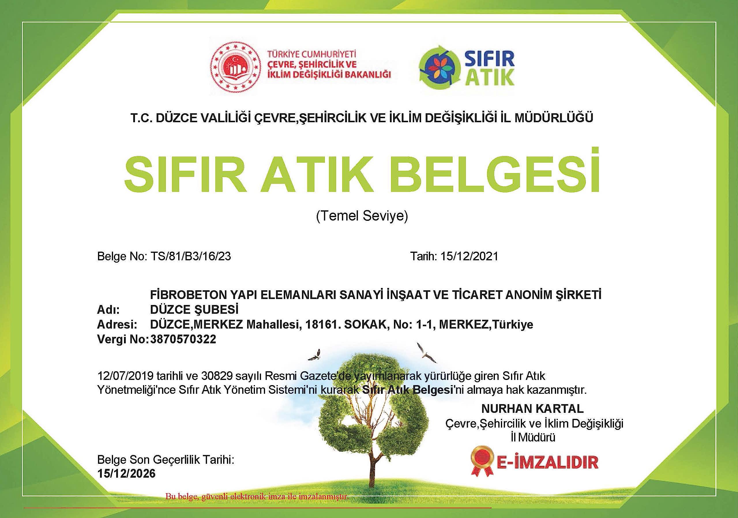 Sıfır Atık Belgesi Sıfır Atık Belgesi