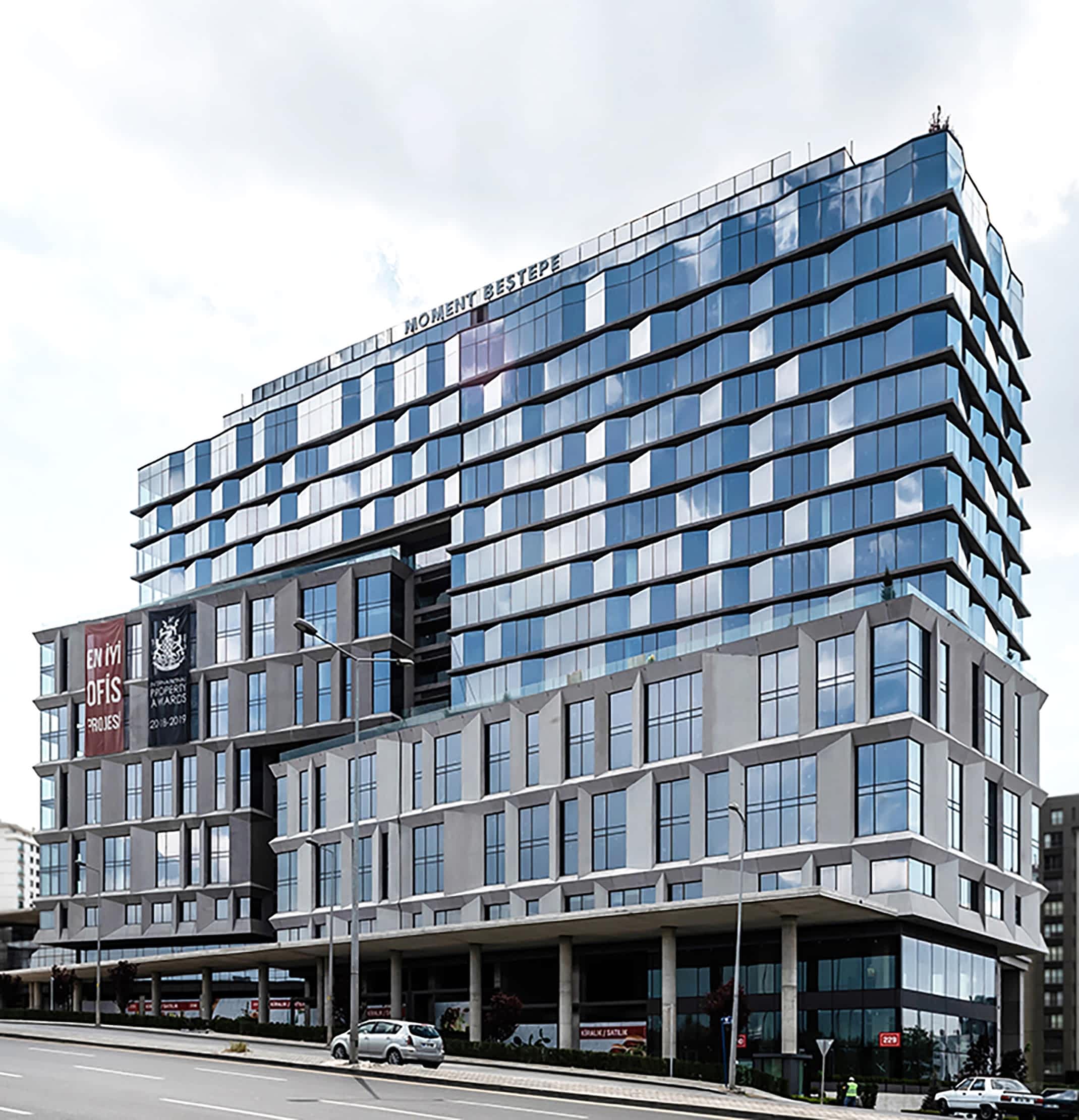 Ankara’da, Cumhurbaşkanlığı Külliyesi’nin karşısında yer alan Moment Beştepe, modern tasarım üslubuyla dikkat çeken iki ofis blokundan meydana geliyor. Yapının cephesinde kullanılan brüt beton görünümlü FİBROBETON® paneller ise hem tasarımı hem boyutlarıyla projeye bütüncül bir etki kazandırıyor.